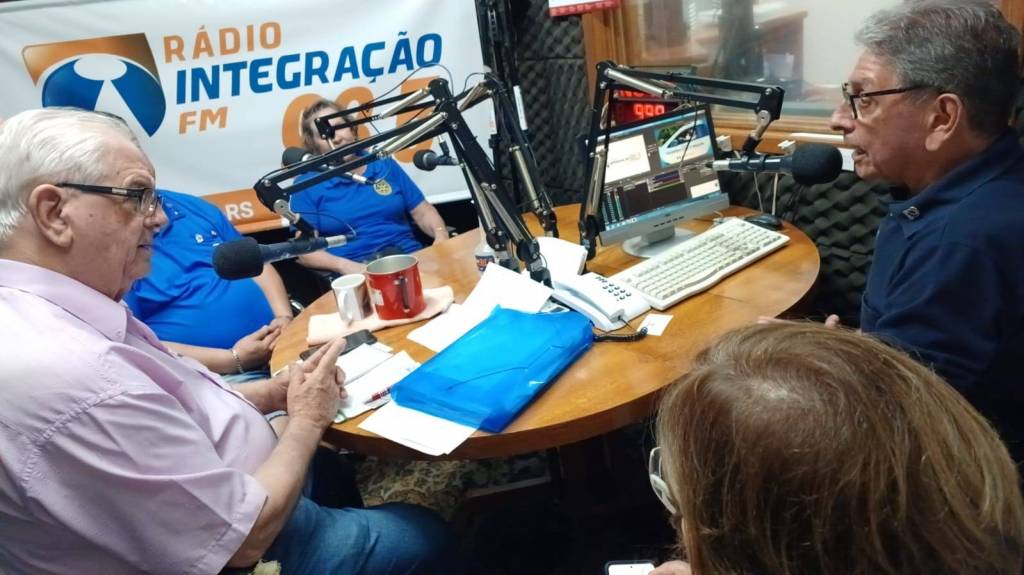 Governador Feliciano Saucedo e sua esposa Dalila realizam entrevista na Rádio Interação de Restinga Seca, onde falaram do movimento Rotário e suas ações.