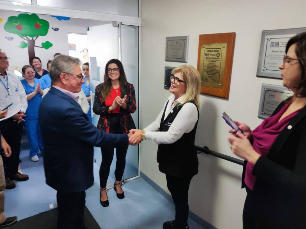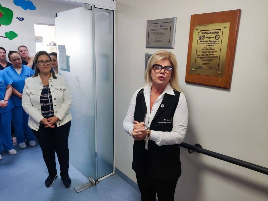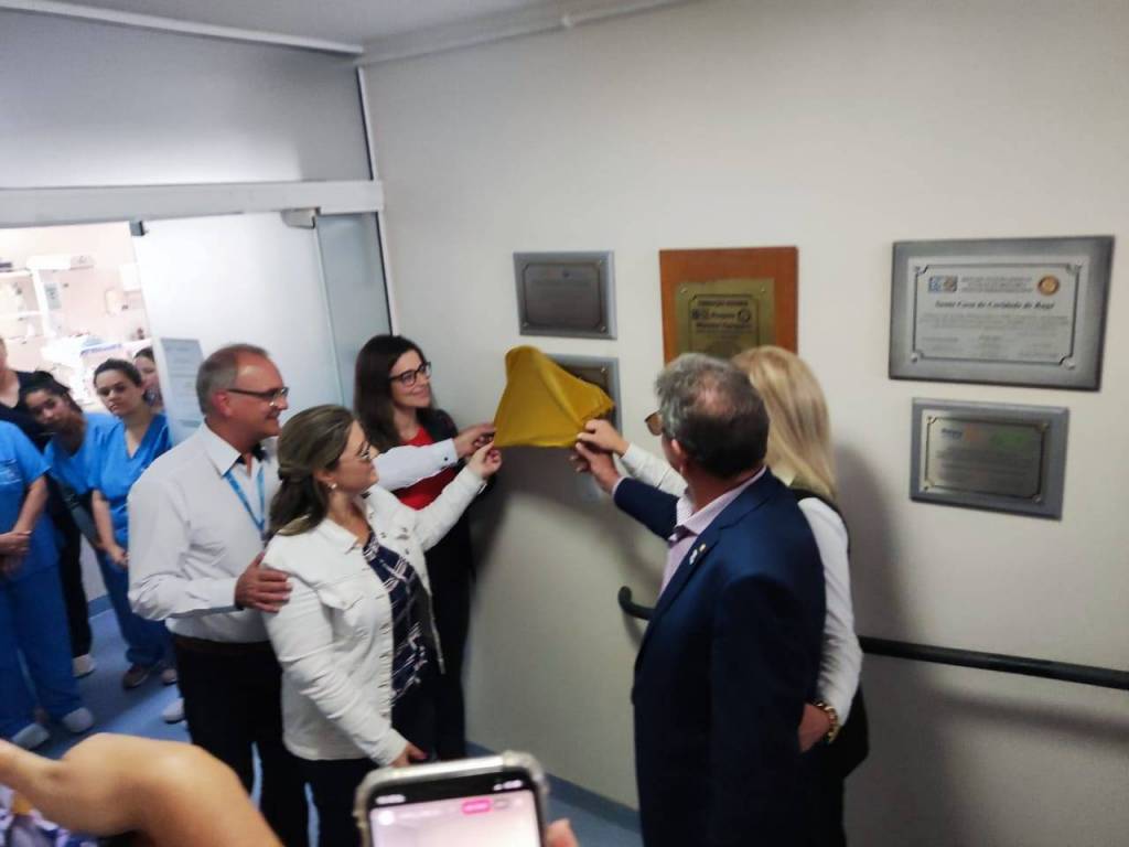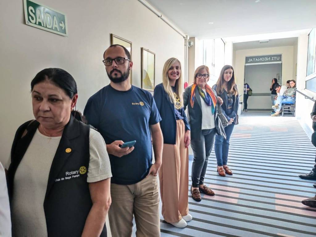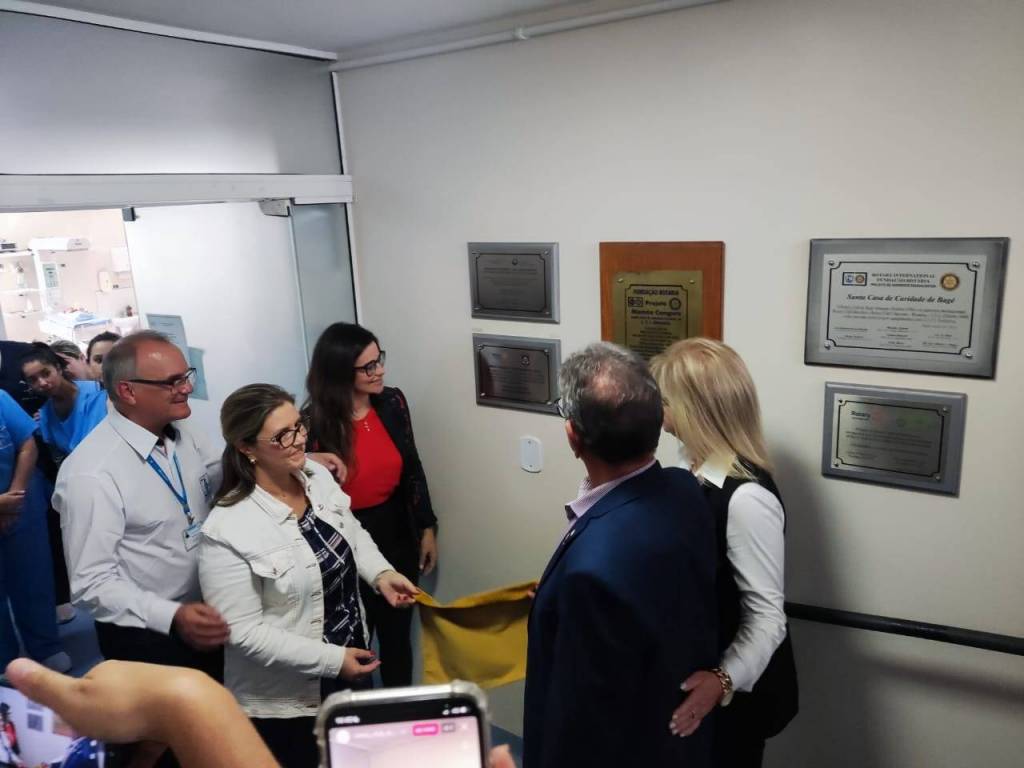 Presidente do Rotary Pampa de Bagé, Sra. Márcia Mello, da juíza da VEC, Dra. Paula Ferraz, da chefe da UTI Neonatal, Dra. Gabriela Silveira, além de colaboradores da unidade e demais rotarianos presentes.