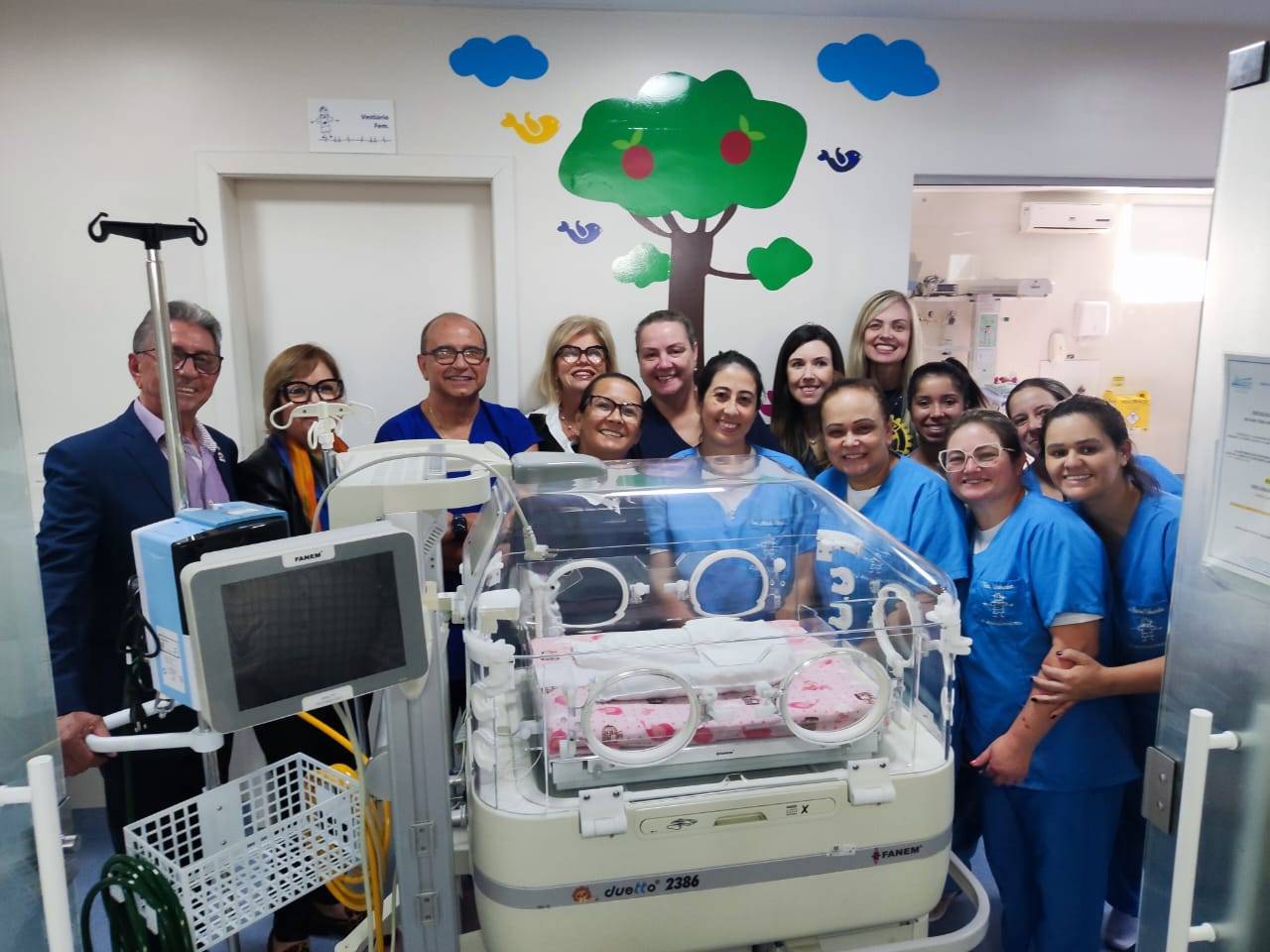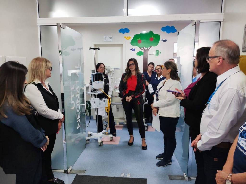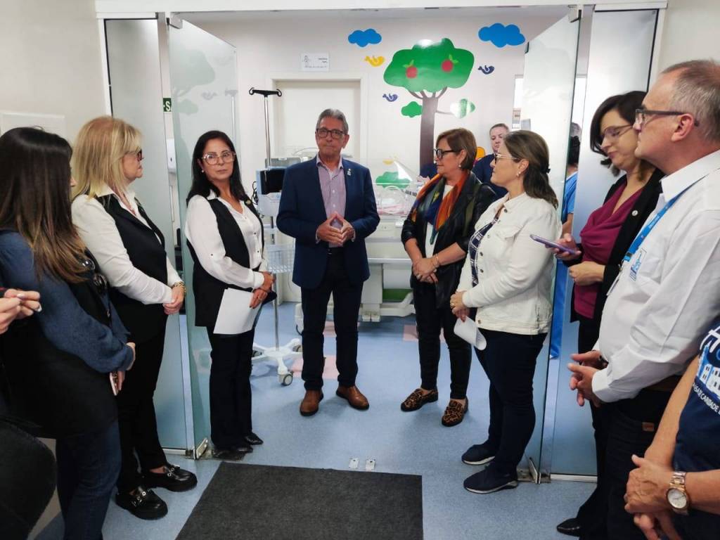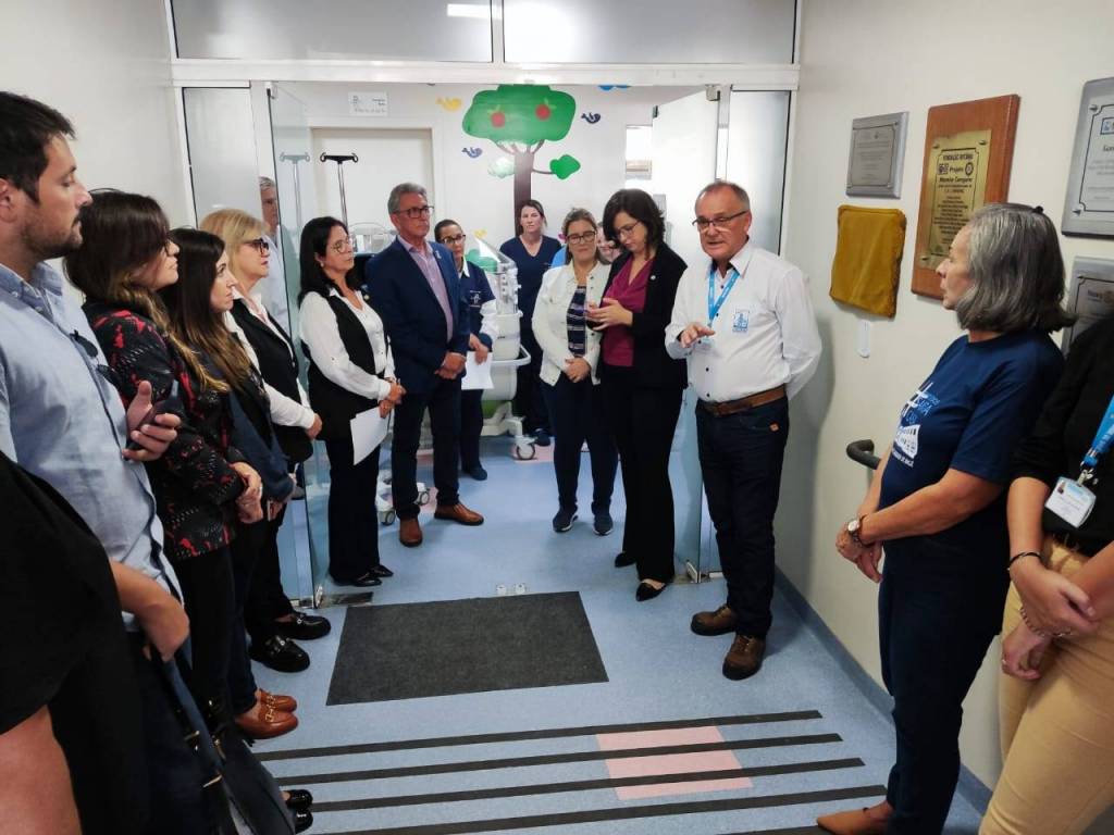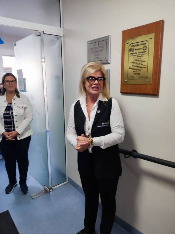 Presidente do Rotary Pampa de Bagé, Sra. Márcia Mello, da juíza da VEC, Dra. Paula Ferraz, da chefe da UTI Neonatal, Dra. Gabriela Silveira, além de colaboradores da unidade e demais rotarianos presentes.
