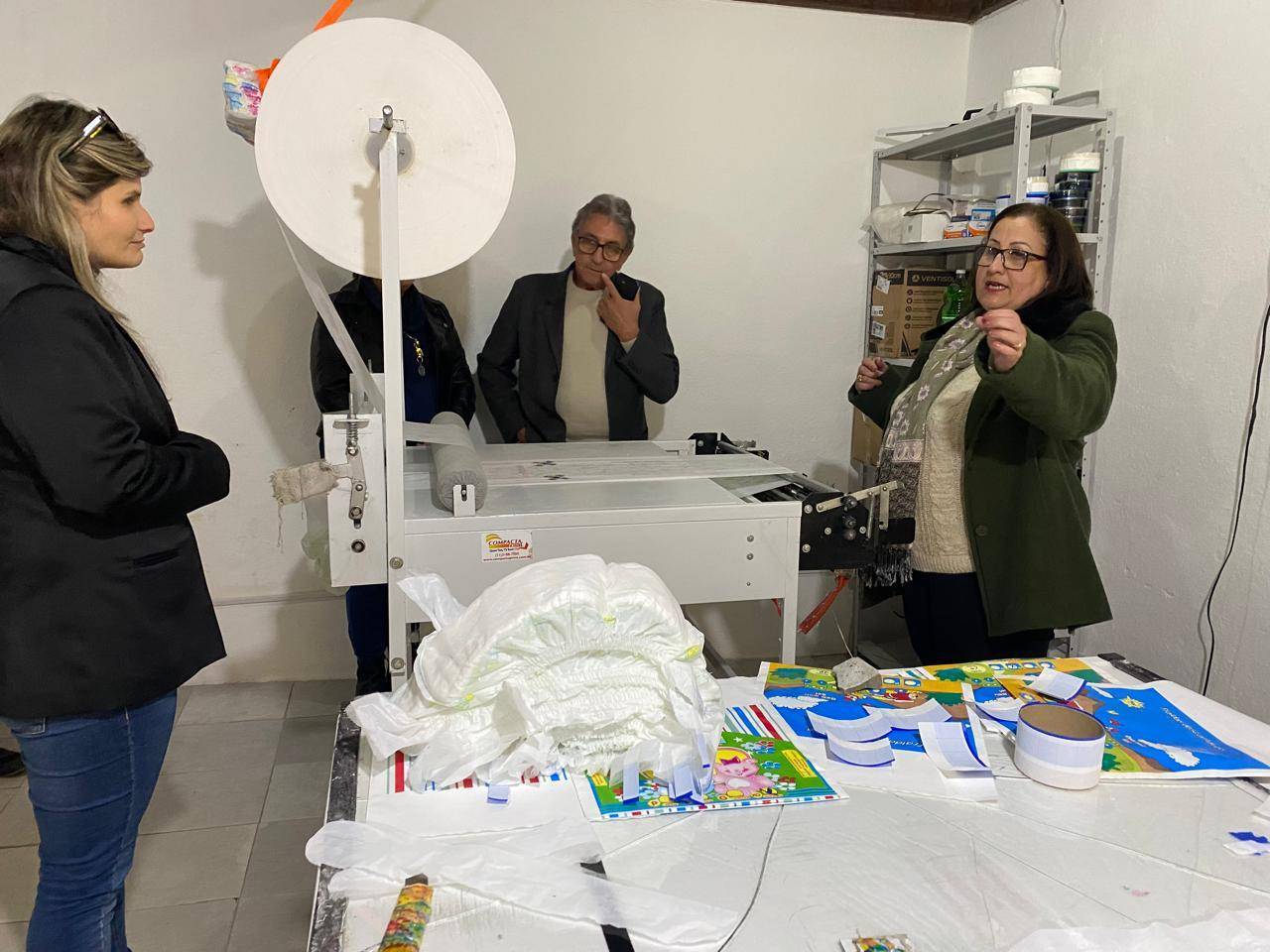 Governador do Distrito 4780, Feliciano Saucedo e sua esposa Dalila visitam a fábrica de fraldas e absorventes no Presídio Municipal de Jaguarão.
