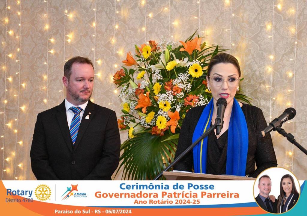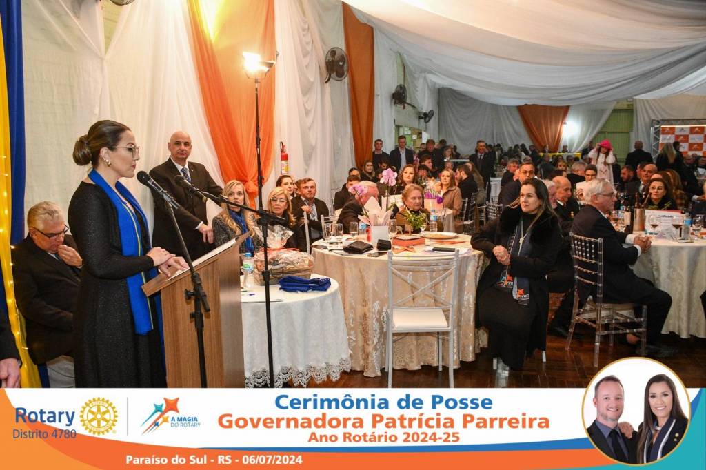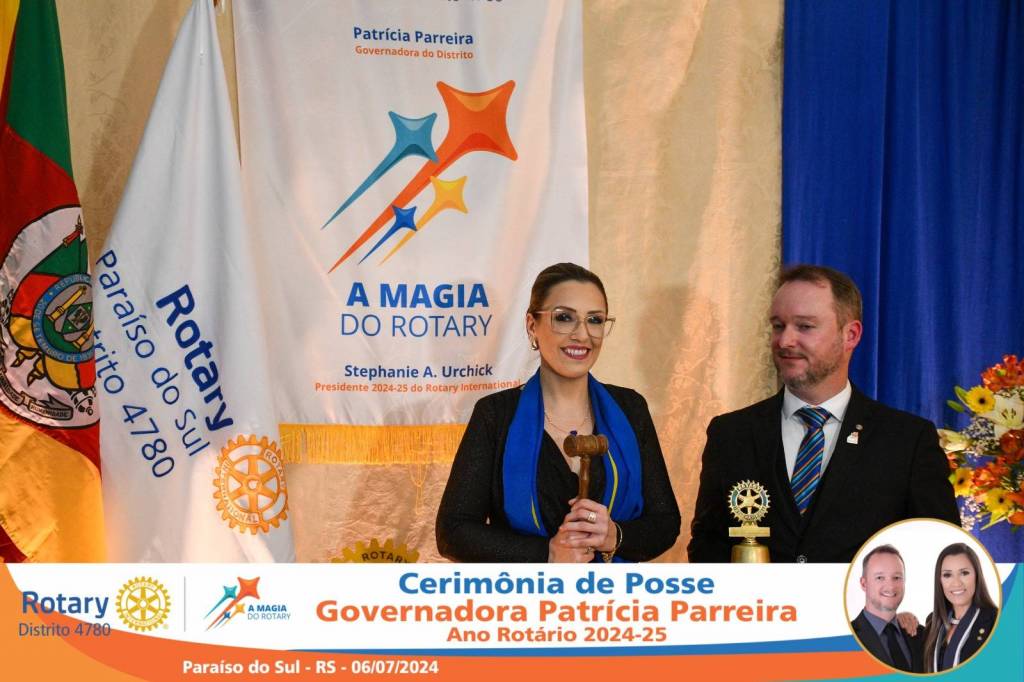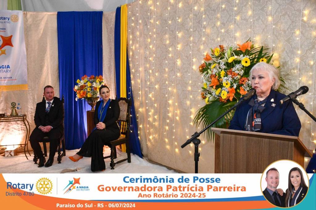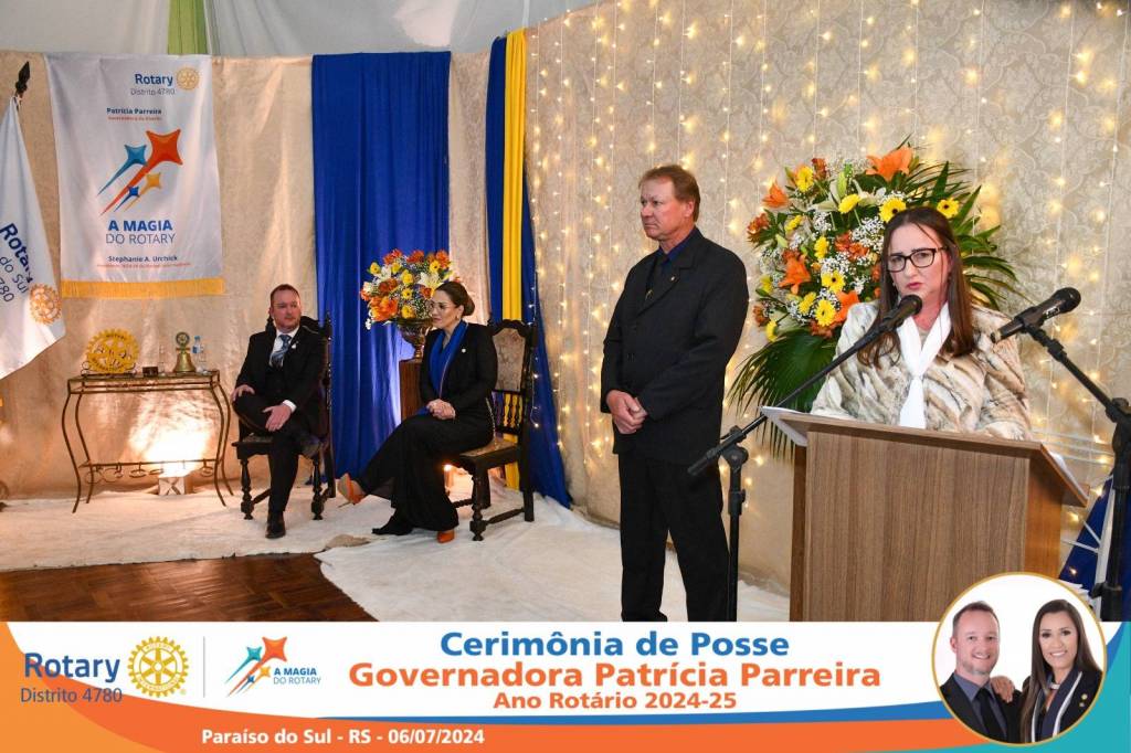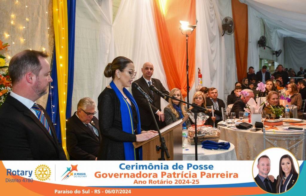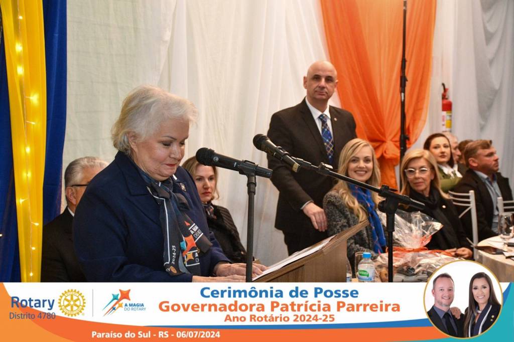 A Governadora Patrícia Parreira foi empossada na noite deste sábado , 06/07/24, para o Ano Rotário 2024-25, numa bela noite de festa e companheirismo.