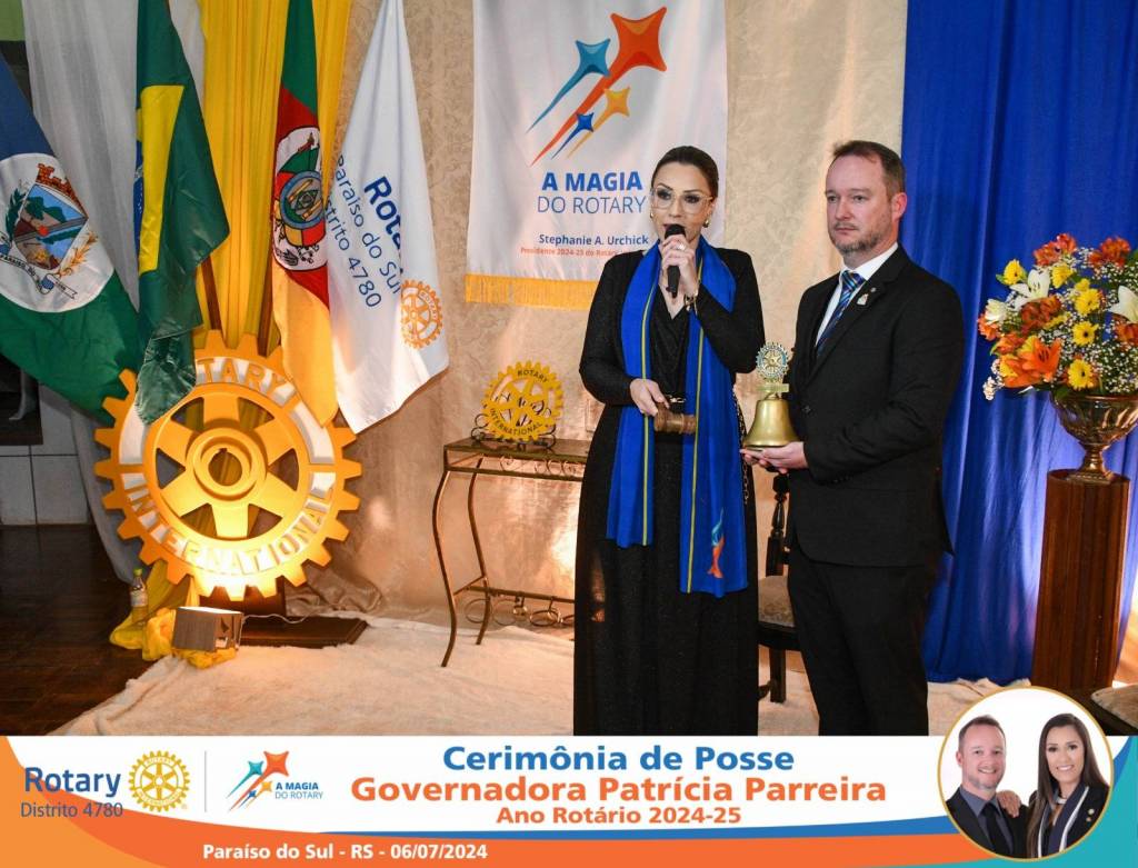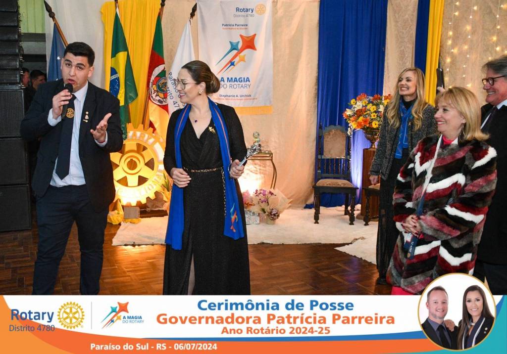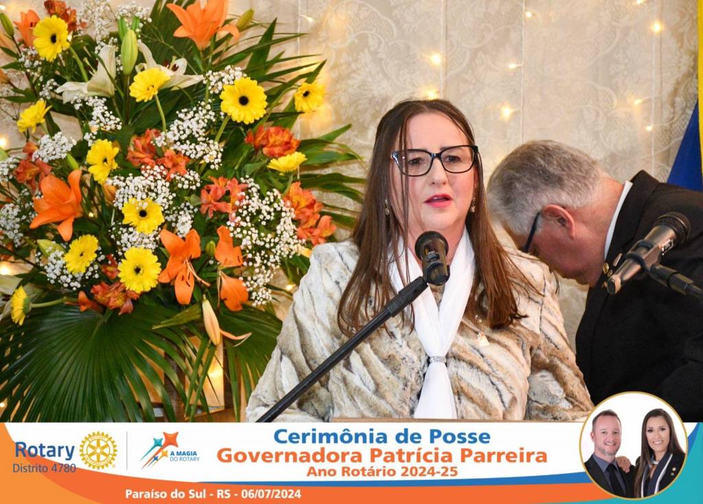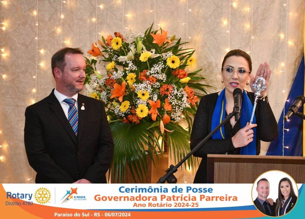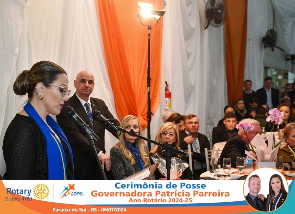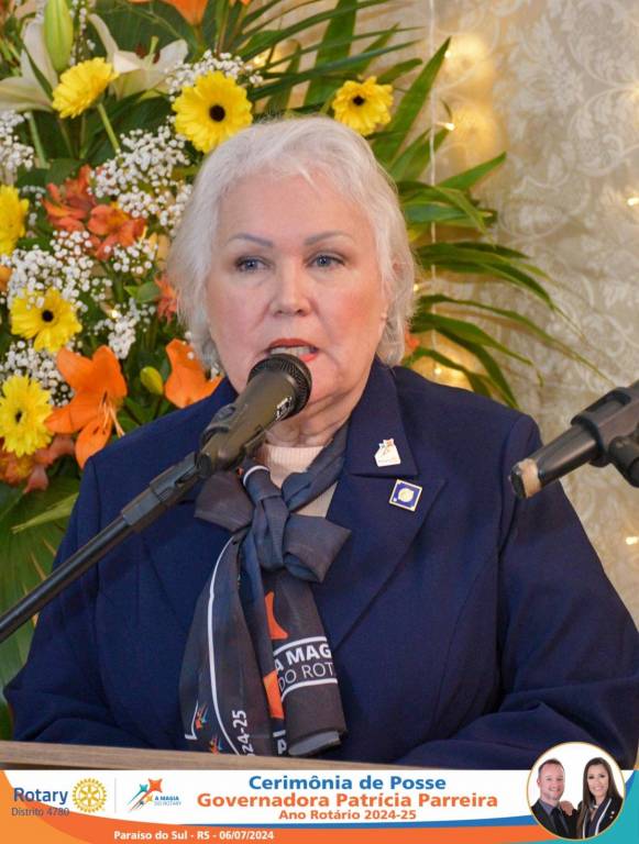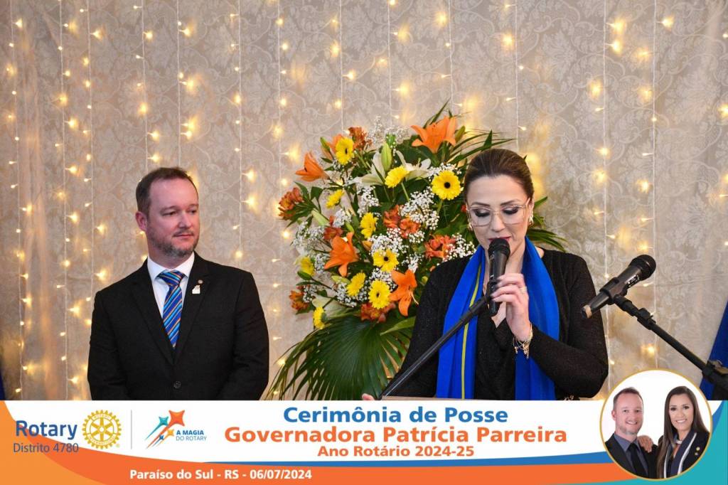 A Governadora Patrícia Parreira foi empossada na noite deste sábado , 06/07/24, para o Ano Rotário 2024-25, numa bela noite de festa e companheirismo.