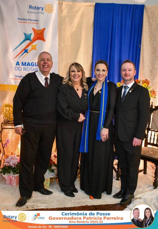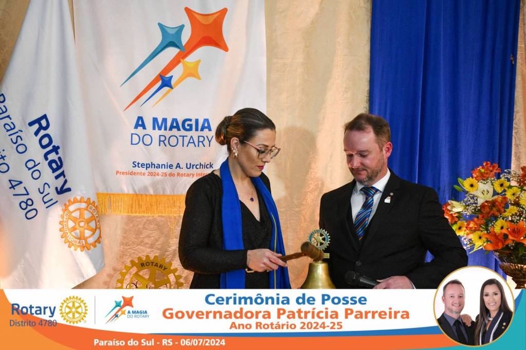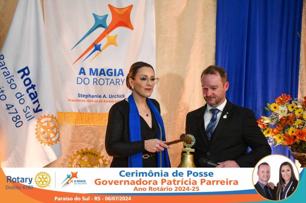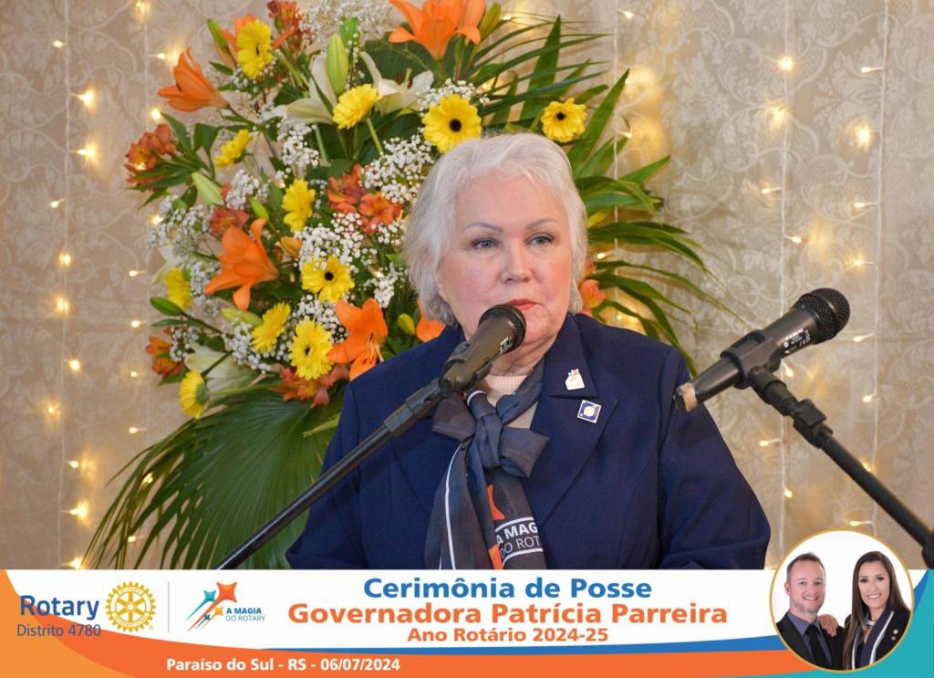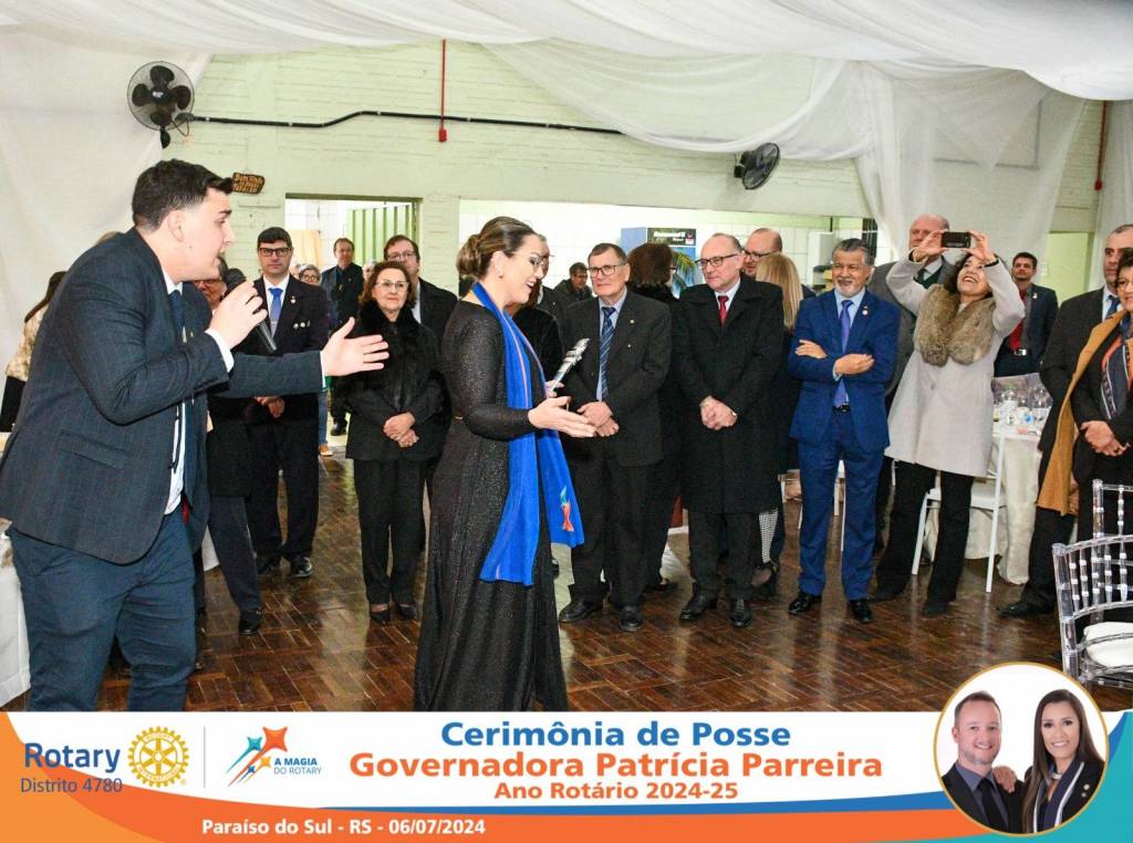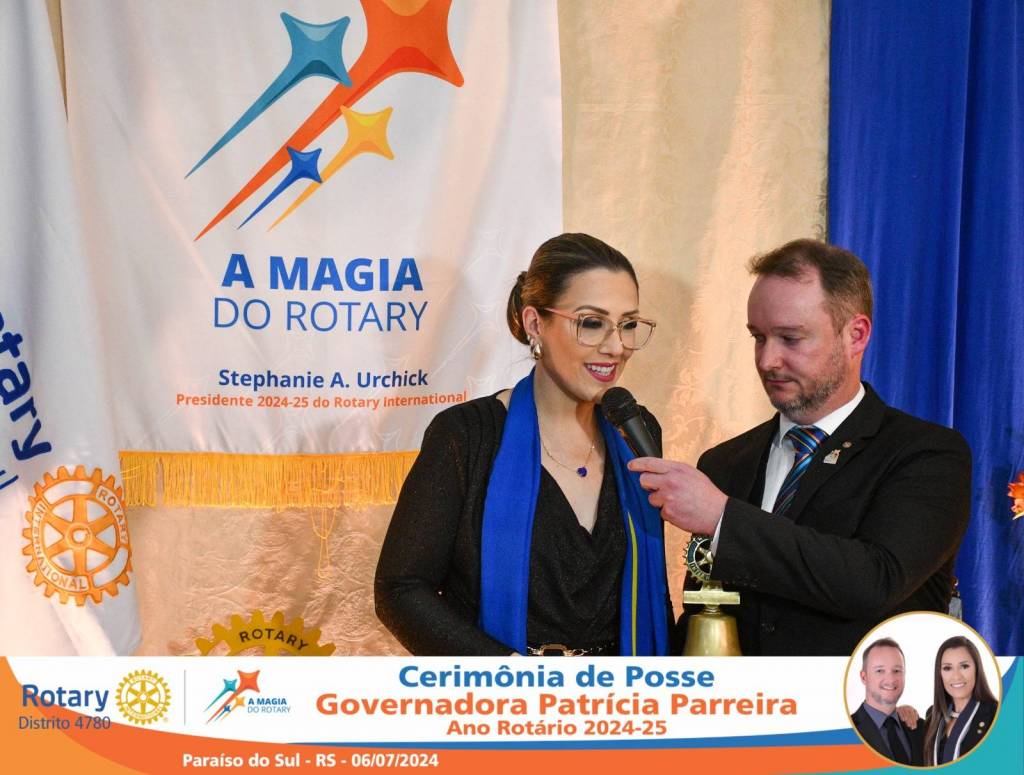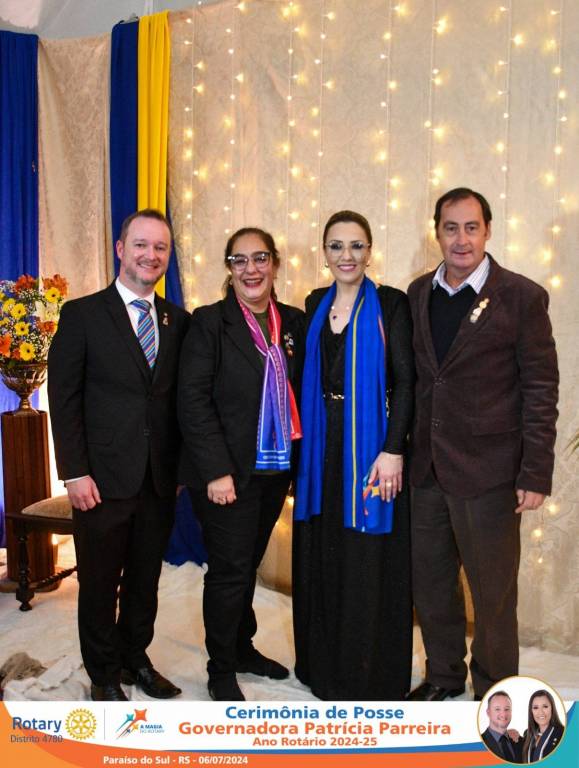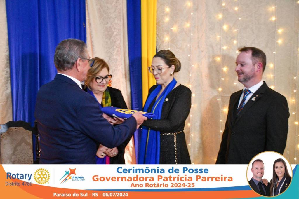 A Governadora Patrícia Parreira foi empossada na noite deste sábado , 06/07/24, para o Ano Rotário 2024-25, numa bela noite de festa e companheirismo.