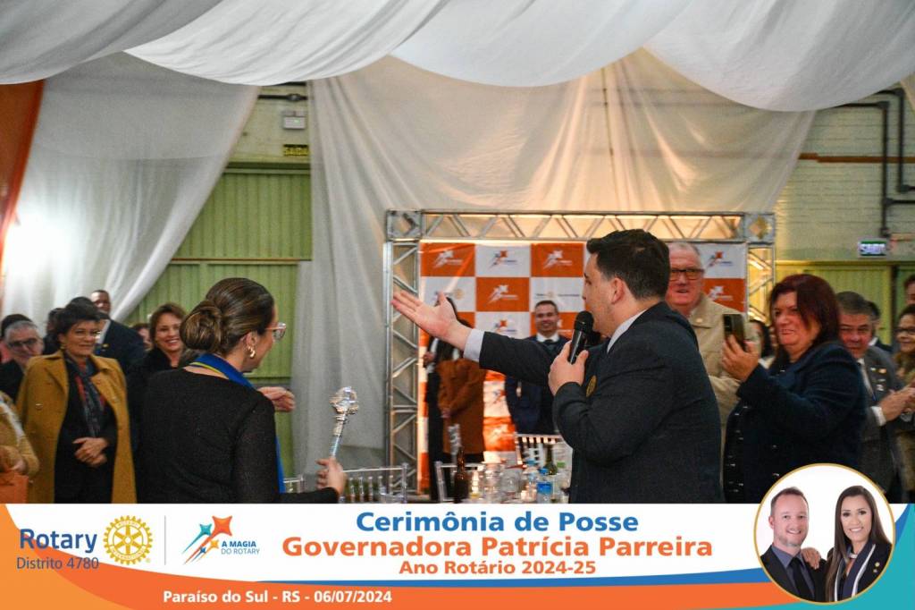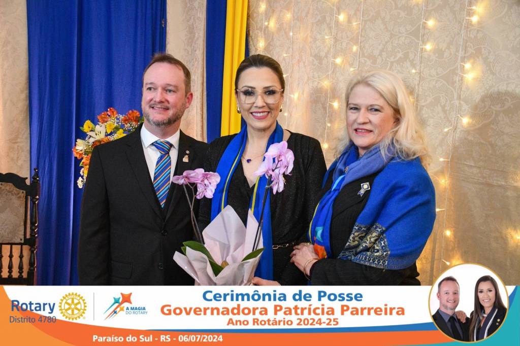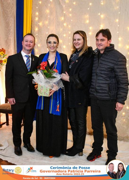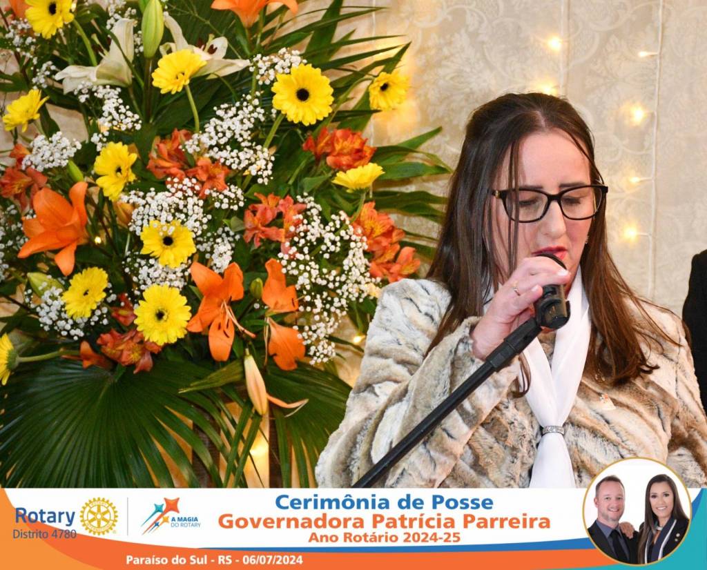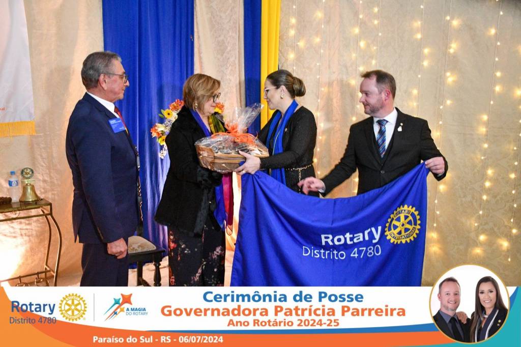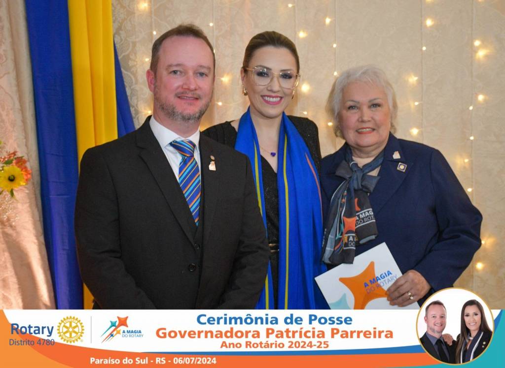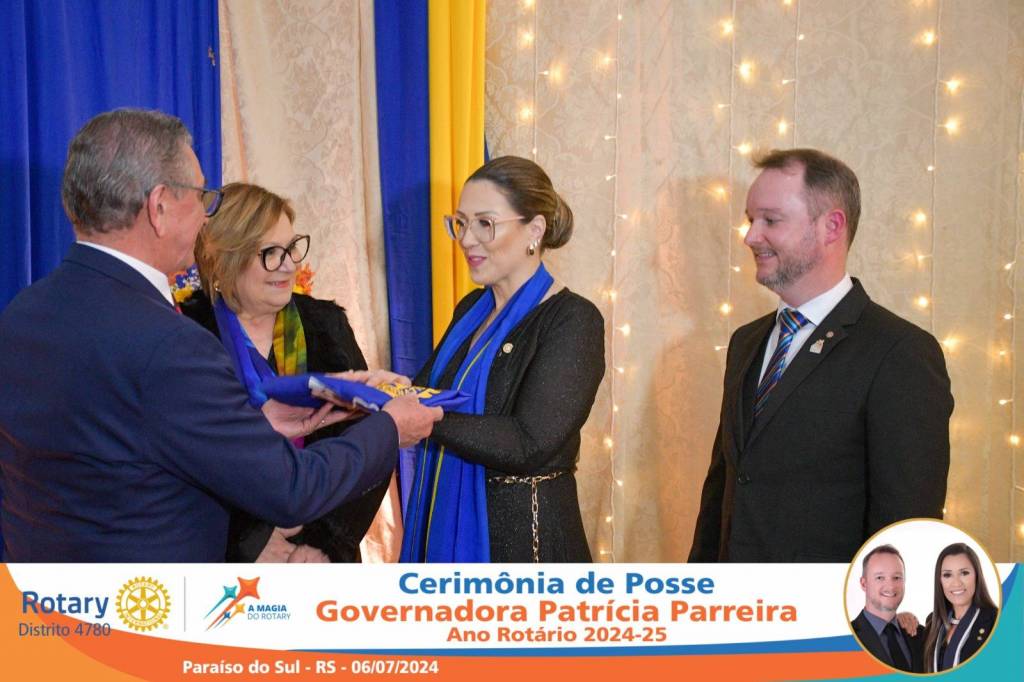 A Governadora Patrícia Parreira foi empossada na noite deste sábado , 06/07/24, para o Ano Rotário 2024-25, numa bela noite de festa e companheirismo.