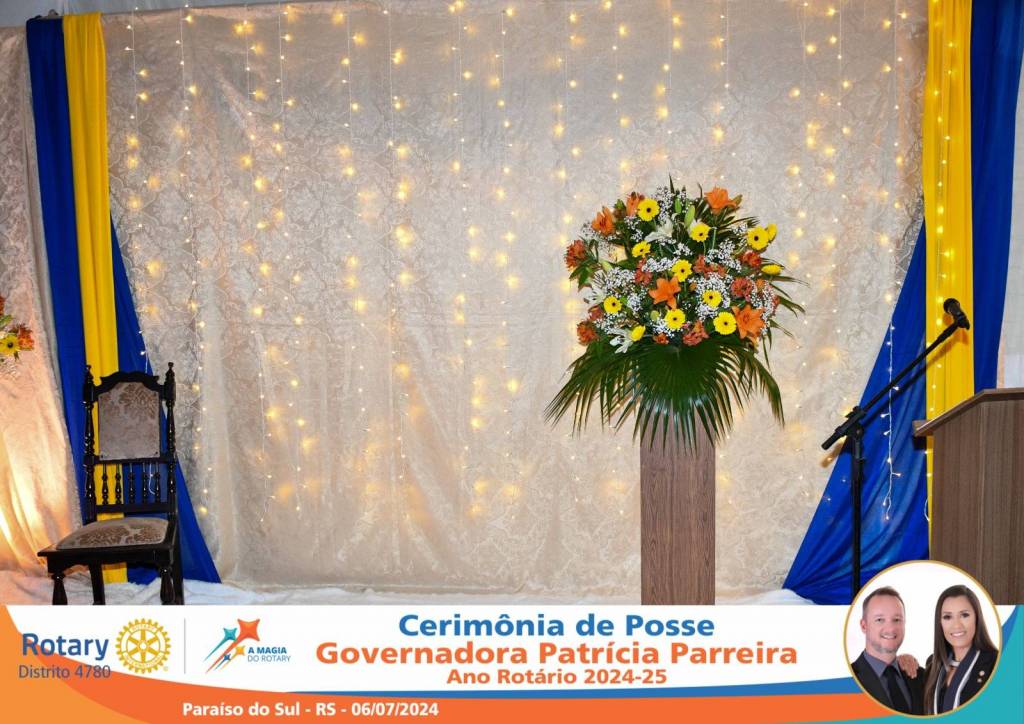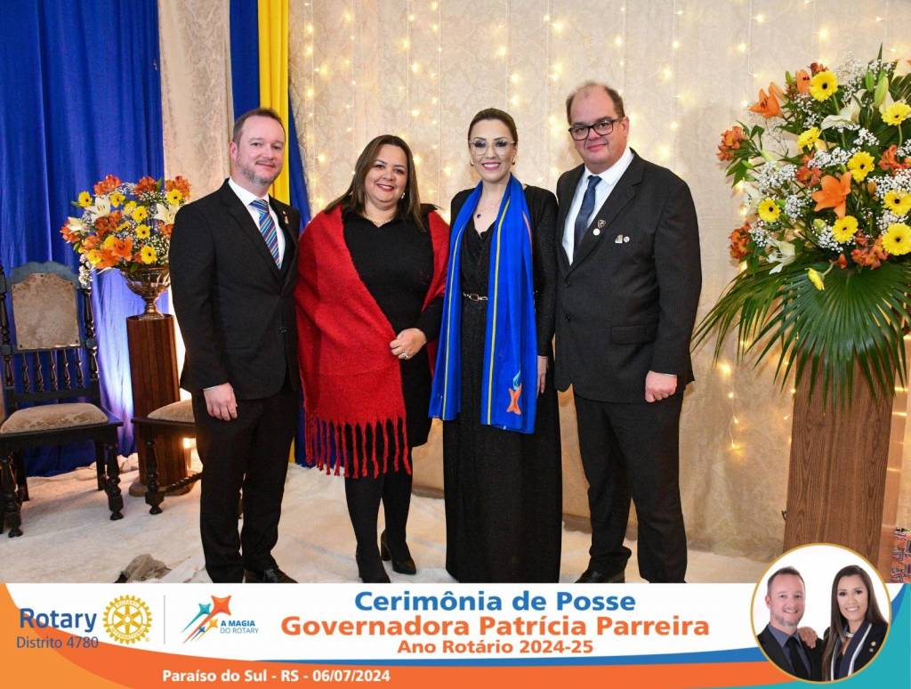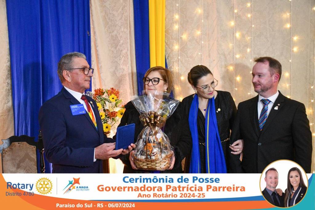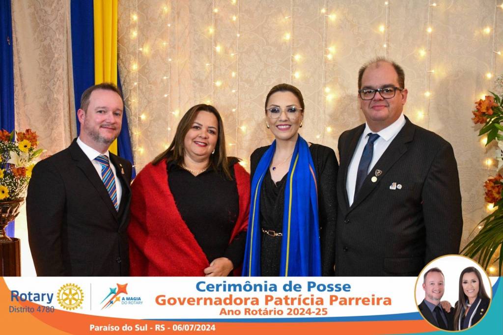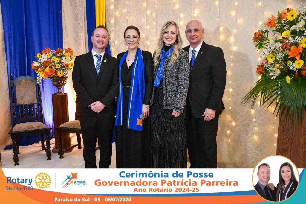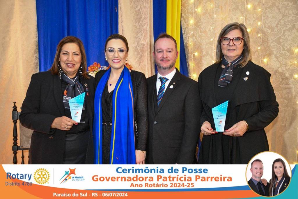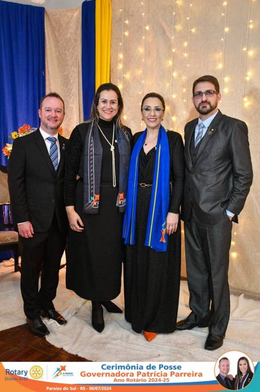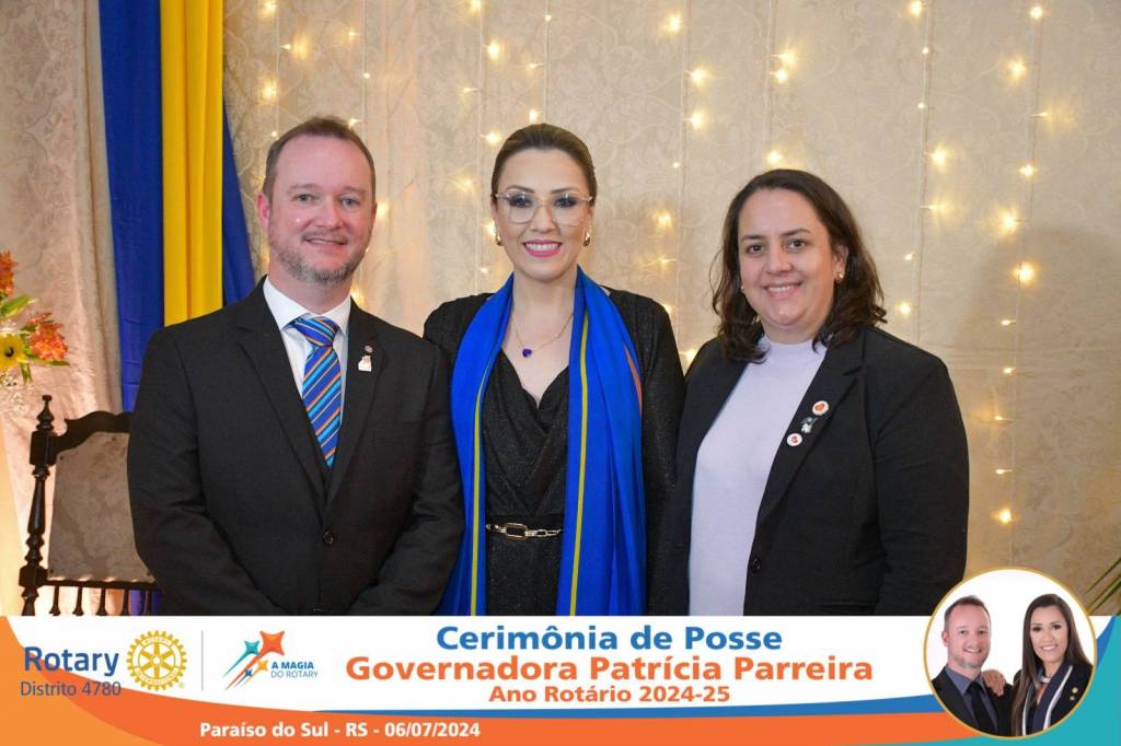 A Governadora Patrícia Parreira foi empossada na noite deste sábado , 06/07/24, para o Ano Rotário 2024-25, numa bela noite de festa e companheirismo.
