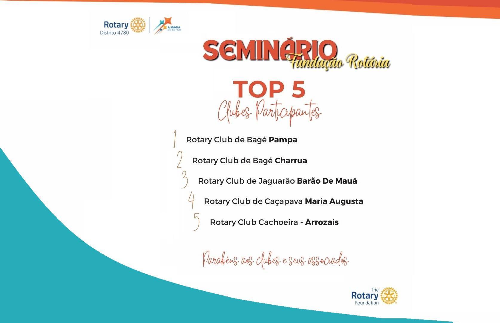 Distrito 4780 apresenta o TOP 5 dos participantes do Seminário da Fundação Rotária, parabéns