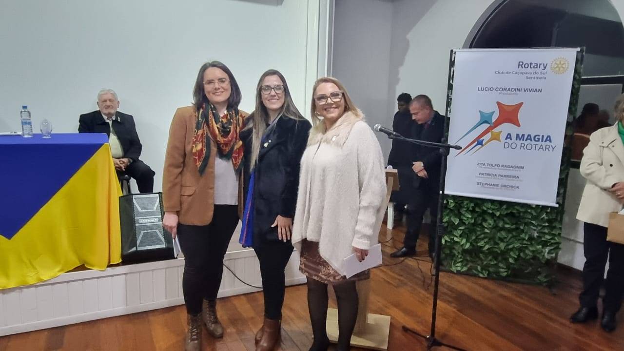 Na Visita Oficial no Rotary Club de Caçapava do Sul Sentinela, Governadora Patrícia Parreira participada posse de duas novas companheiras.