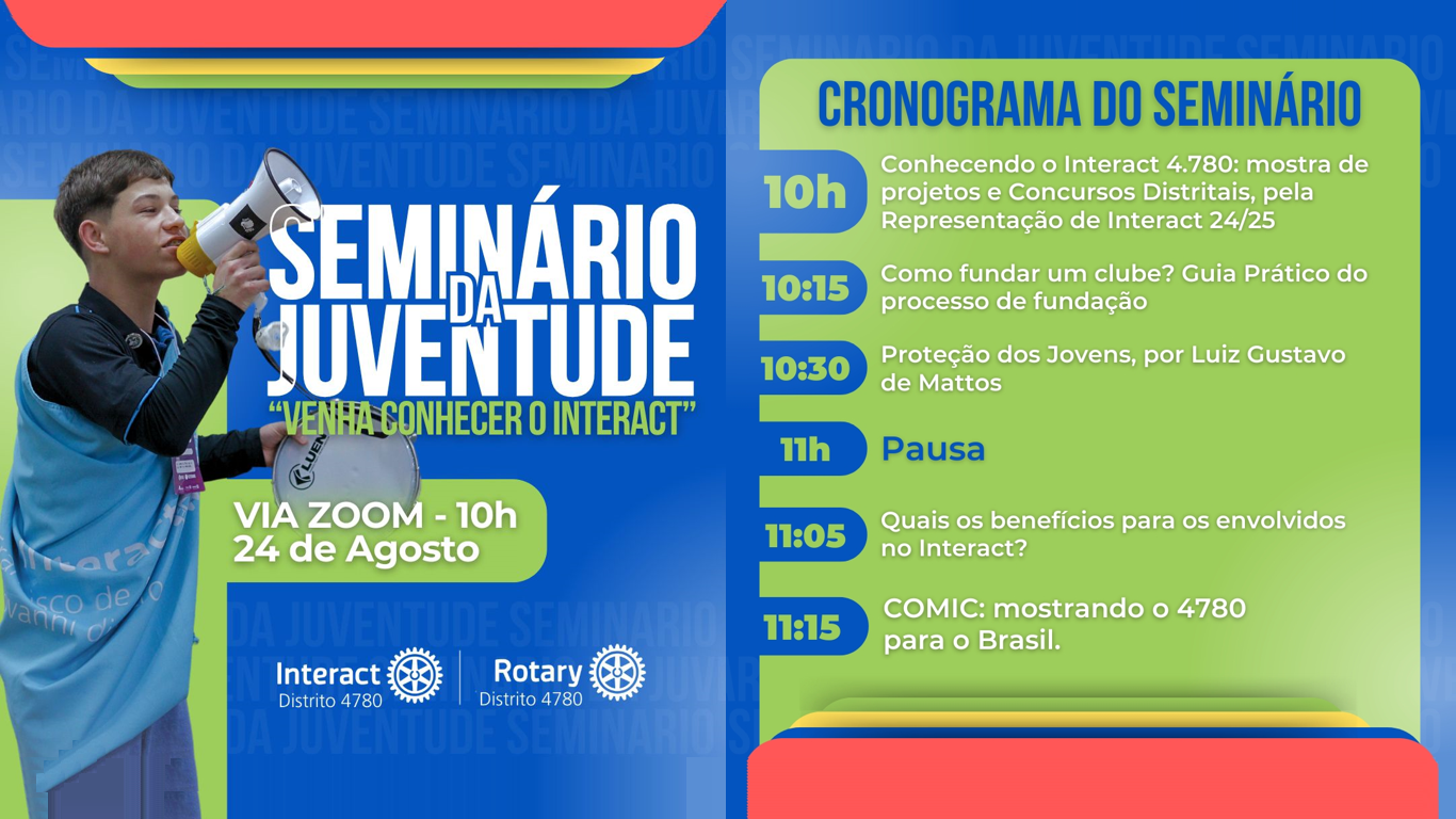 Venha conhecer o Interact, Seminário da Juventude do Distrito 4780 - Evento aberto a todos os companheiros