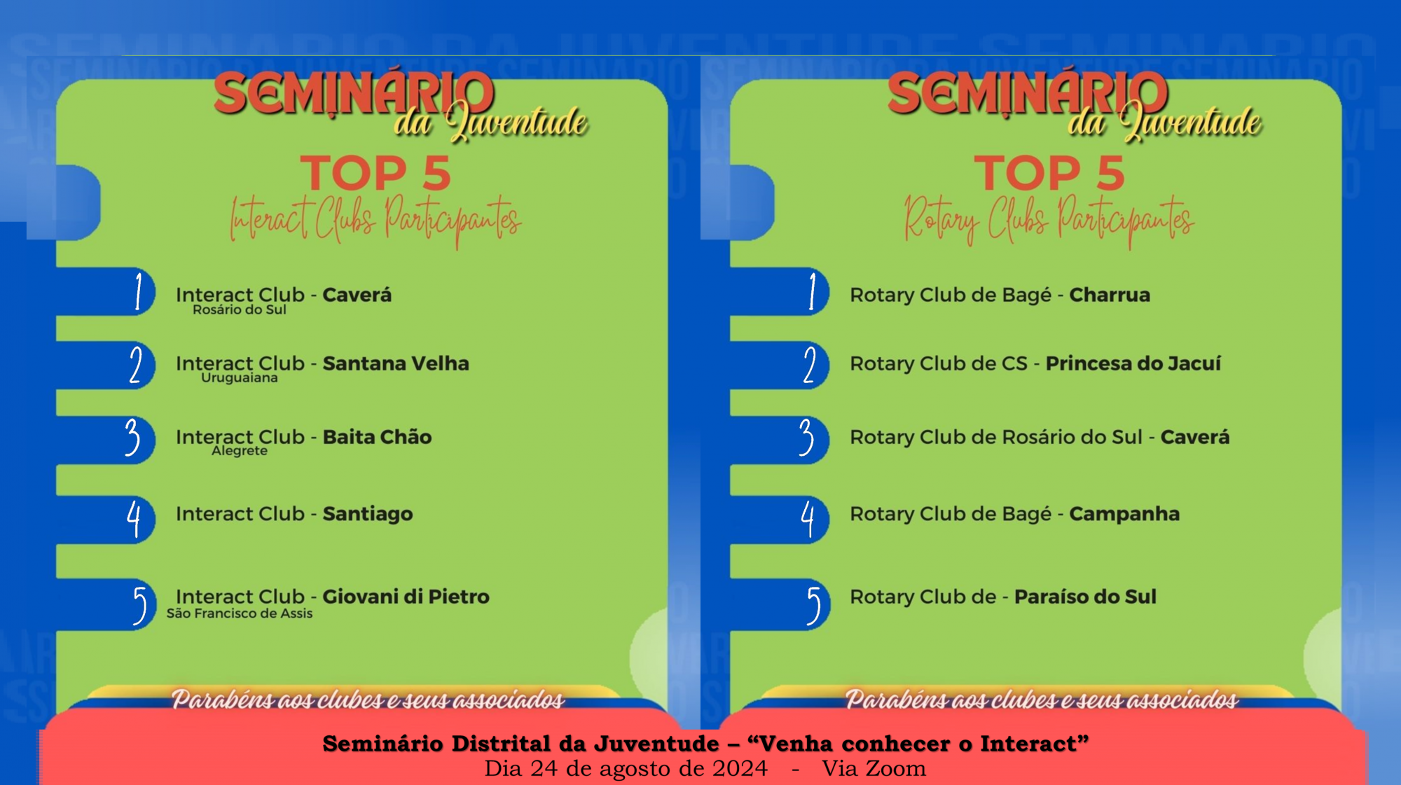 Distrito 4780 apresenta o TOP 5 dos participantes do Seminário Distrital da Juventude, parabéns