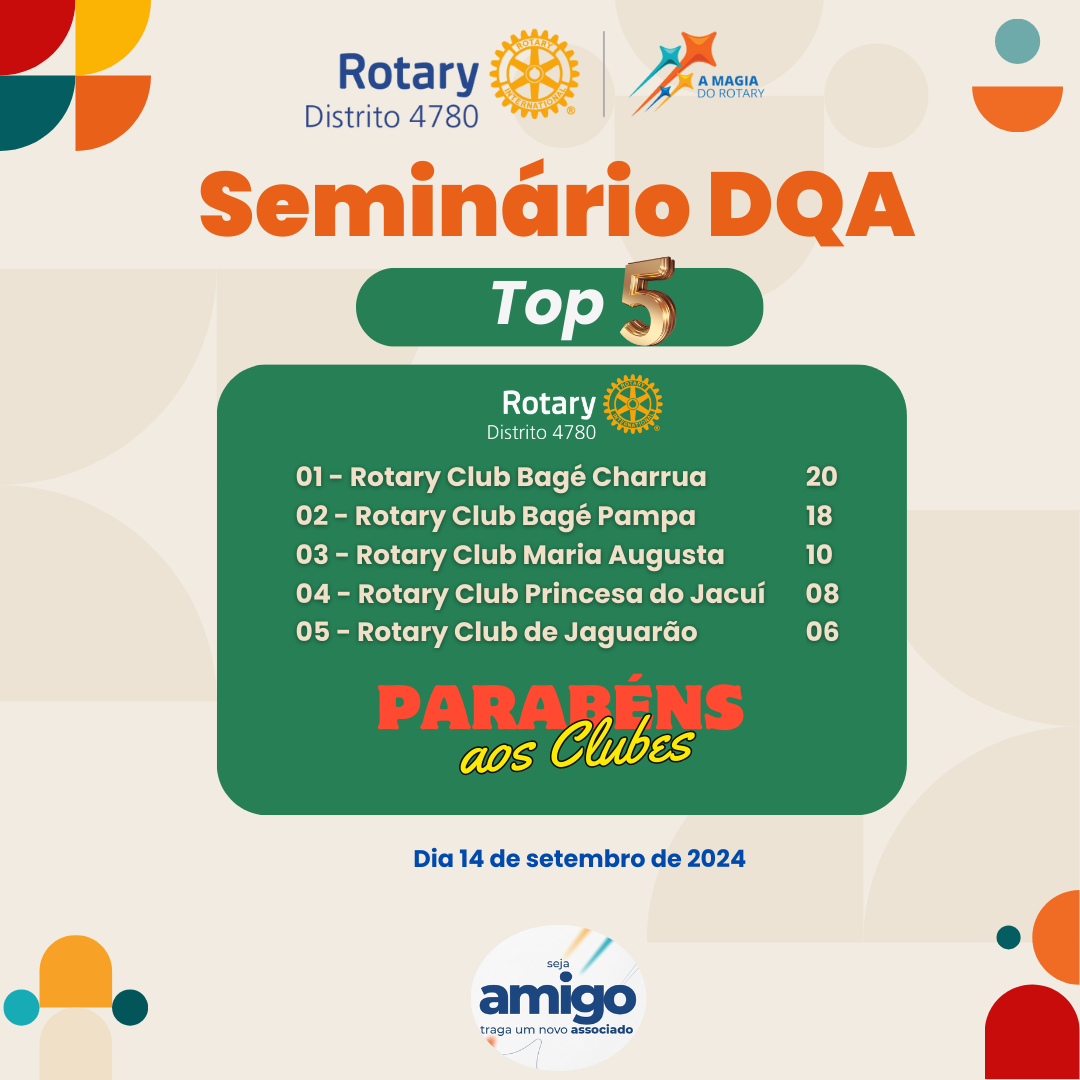 Distrito 4780 apresenta o TOP 5 dos participantes do Seminário Distrital do DQA, seminário "Seja Amigo"