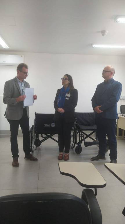 A Governadora Patrícia Parreira visitou o Hospital de Caridade e Beneficência de Cachoeira do Sul, reforçando a parceria de longa data do Rotary Club de Cachoeira do Sul Integração com a instituição. Durante a visita, o clube fez a doação de duas cadeiras de rodas, destacando a importância contínua do Rotary para a comunidade local.