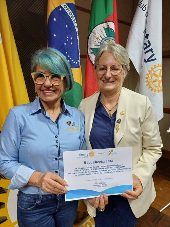 Neste contexto, a Governadora Patrícia Parreira teve a honra de homenagear o Rotary Club de Cachoeira do Sul Arrozais e o Rotary Club de Cachoeira do Sul Integração, que já realizaram suas doações e cumpriram as metas estabelecidas para o combate à Pólio.