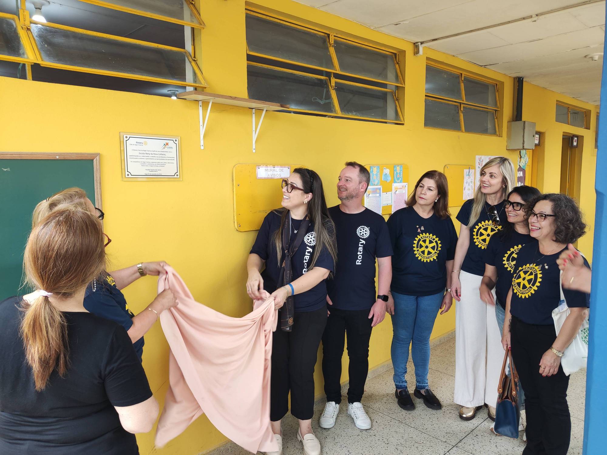 Na recente inauguração realizada pela Governadora Patrícia Parreira, uma placa foi instalada para marcar o momento em que o Rotary se tornou padrinho da Escola Reni Collares. Esse evento simboliza o compromisso do Rotary Club de Bagé Charrua com a educação e o desenvolvimento da comunidade escolar.
